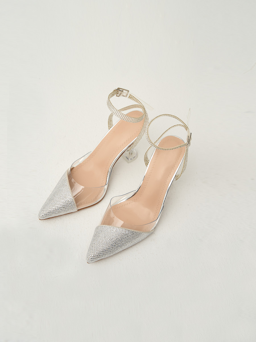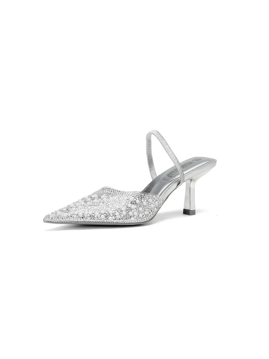 Туфли на каблуке вечерние слингбэки со стразами