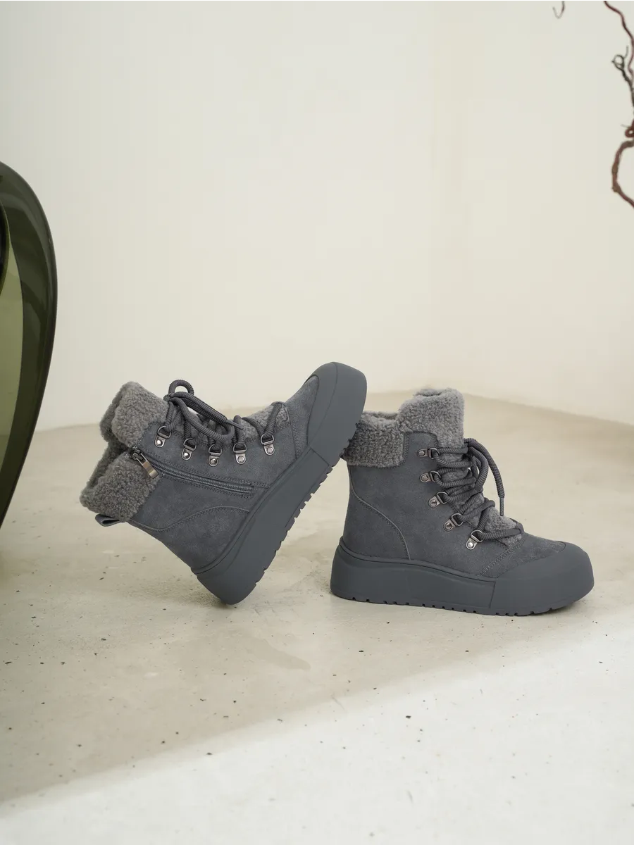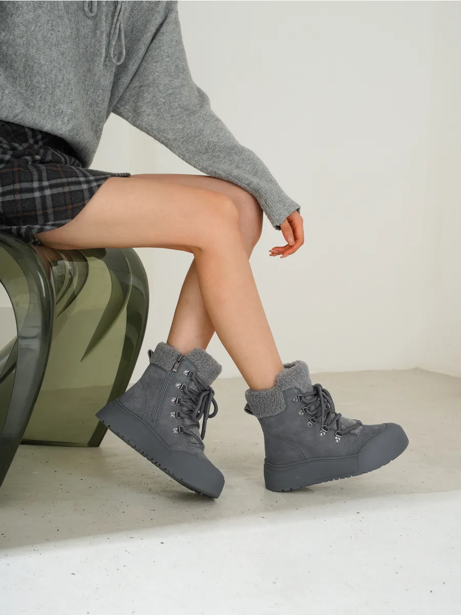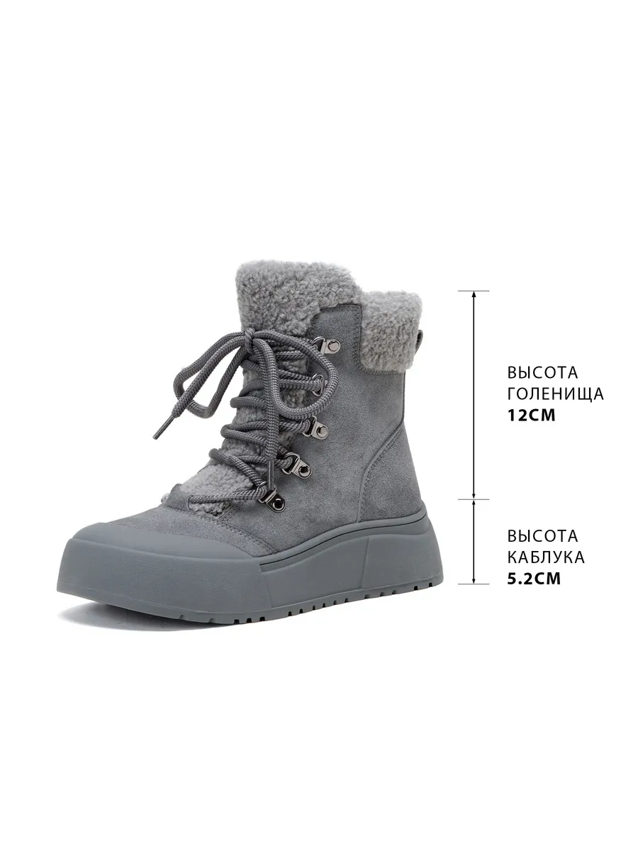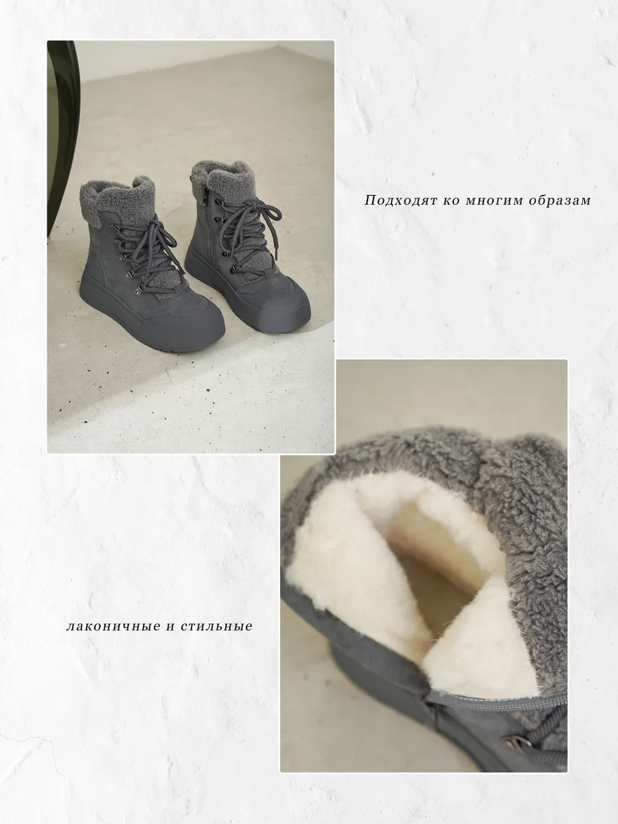 Верх изделия выполнен из качественной замши с мягкой, бархатистой текстурой, приятной на ощупь и аккуратным внешним видом. Внутренняя отделка и стелька содержат 30% натуральной шерсти, что обеспечивает тепло и комфорт даже в холодное время года.