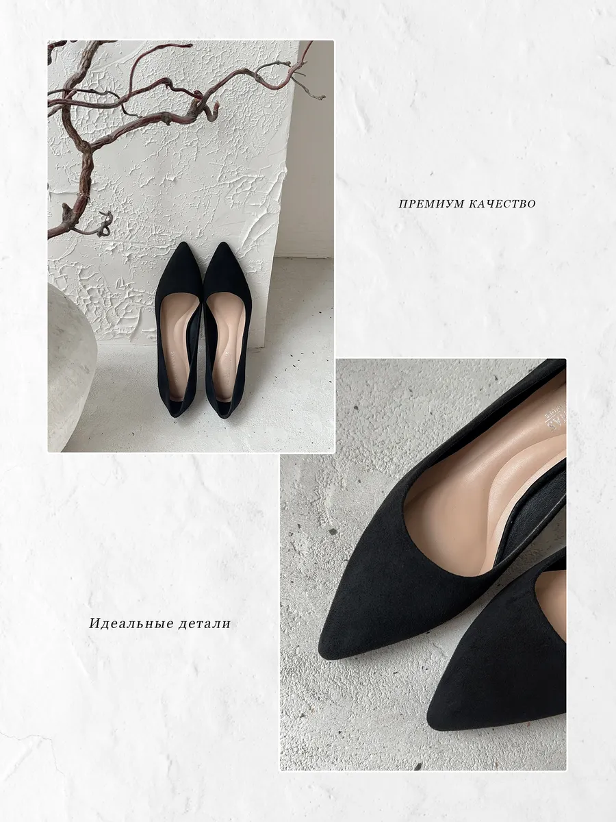Изящные пары из мягкой эко замши и велюра, создают удобство во время носки. Плоская подошва на низком каблуке ближе к среднему в виде невысокой рюмочки позволяют ощущать себя уверенно на любом мероприятии, будь то офисная или праздничная встреча.